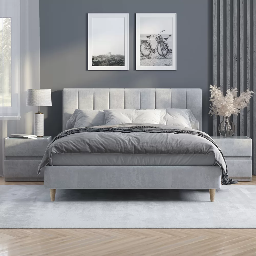 Спальный гарнитур «Порто» стандартный Яблоня Беллуно, Графит софт, Велюр Графит