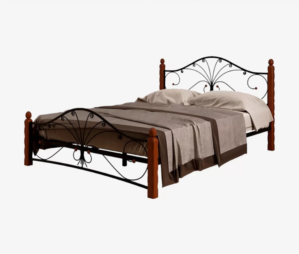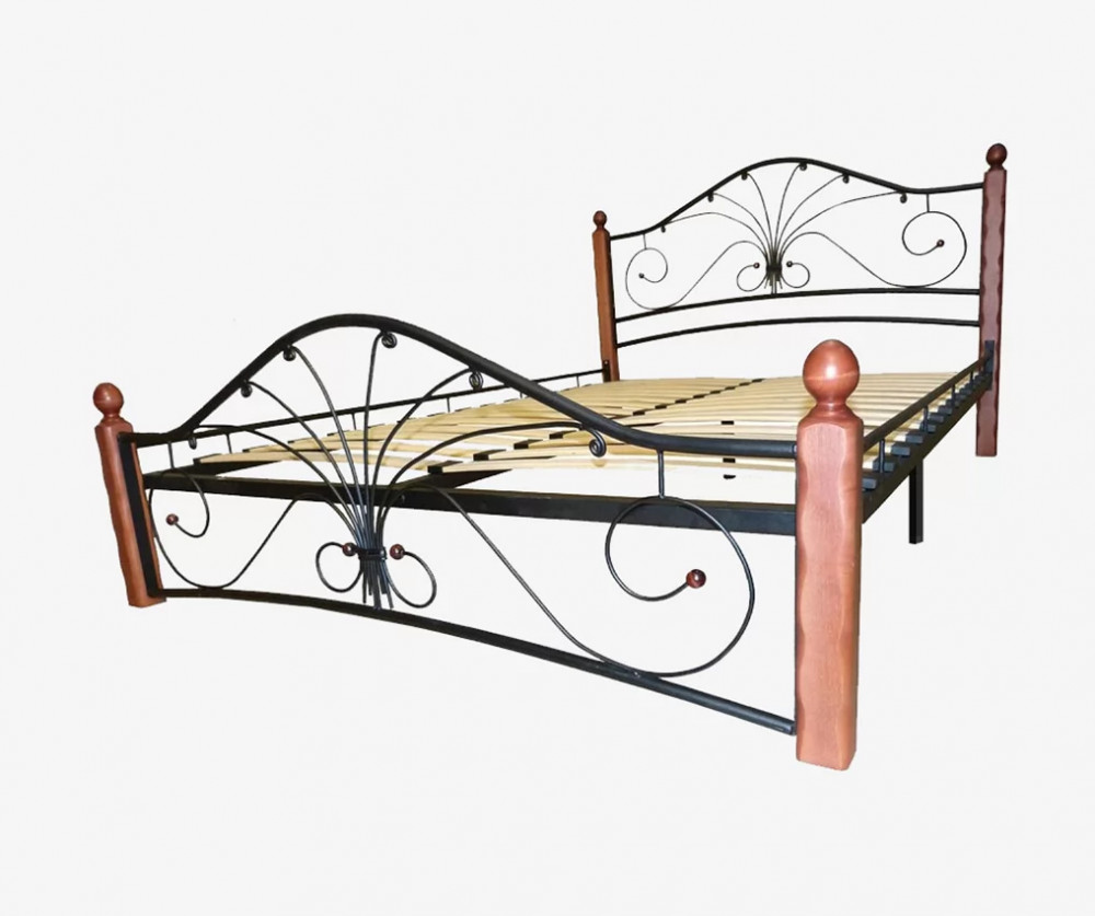 Кровать "Фортуна 1" КМД 2.01 ЧЕРНАЯ (1200*2000) (ножки-махагон) с коваными элементами