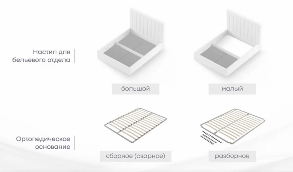 | Основание | Основание ортопедическое усиленное, Основание ортопедическое разборное, Настил напольный ЛДСП (большой), Настил напольный ЛДСП (малый), Основание ортопедическое сборное, Настил из ЛДСП |