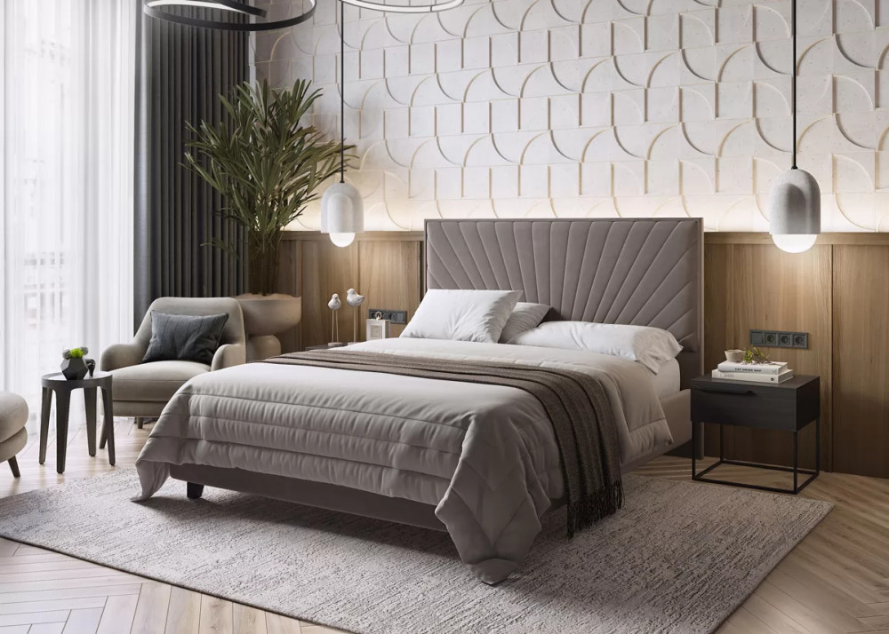 ЕВА Кровать с мягк.изгол. с ПМ (сп/м 1600*2000мм), велюр UNIQ (беж)/Сатин