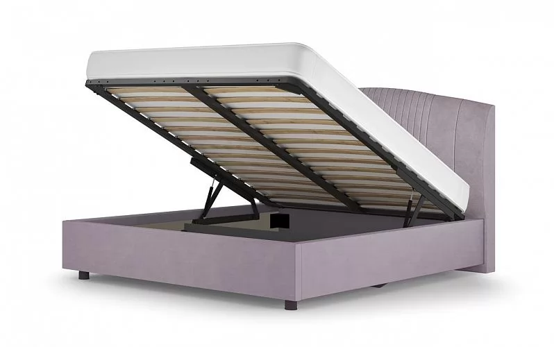Среди преимуществ кровати можно выделить наличие бельевого вместительного короба, в котором удобно хранить различные вещи и постельные принадлежности. Особую прочность кровати придает металлический держатель основания из стали 2 мм., а надежный газлифт обеспечивает легкий доступ к бельевому коробу.
