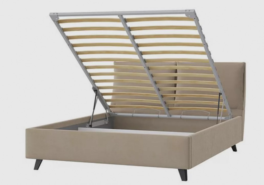Кровать комплектуется ортопедическим основанием "Профи" с подъёмным механизмом и бельевым ящиком.