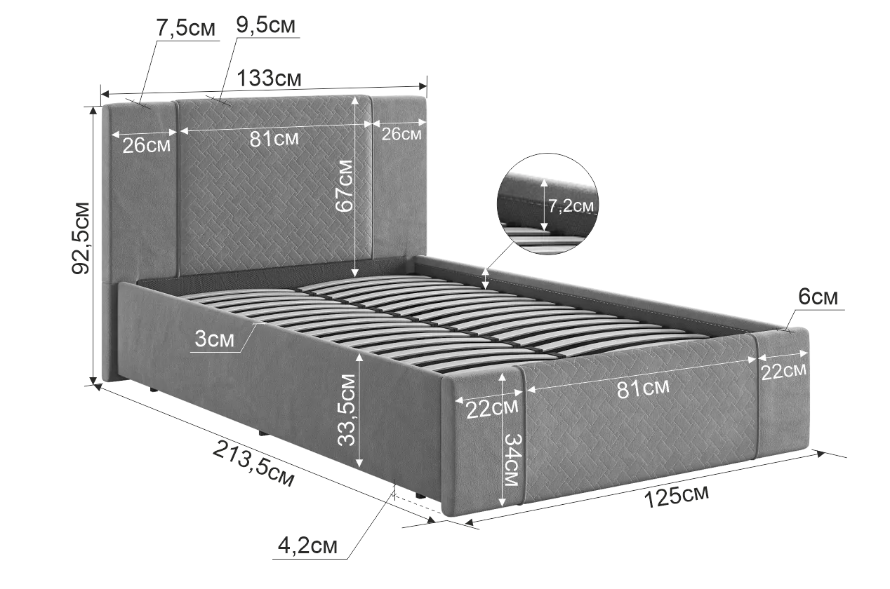 Рекомендованная высота матраса: 16 см