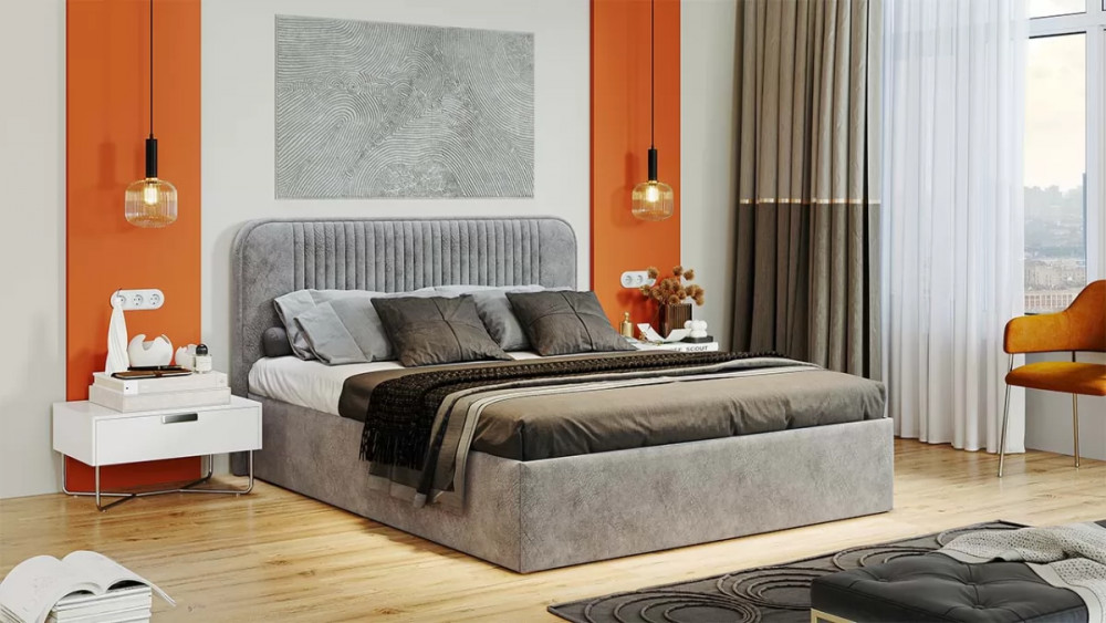 Кровать с ПМ «Тиффани» Тип 1 с заглушиной Микровелюр Wellmart Silver