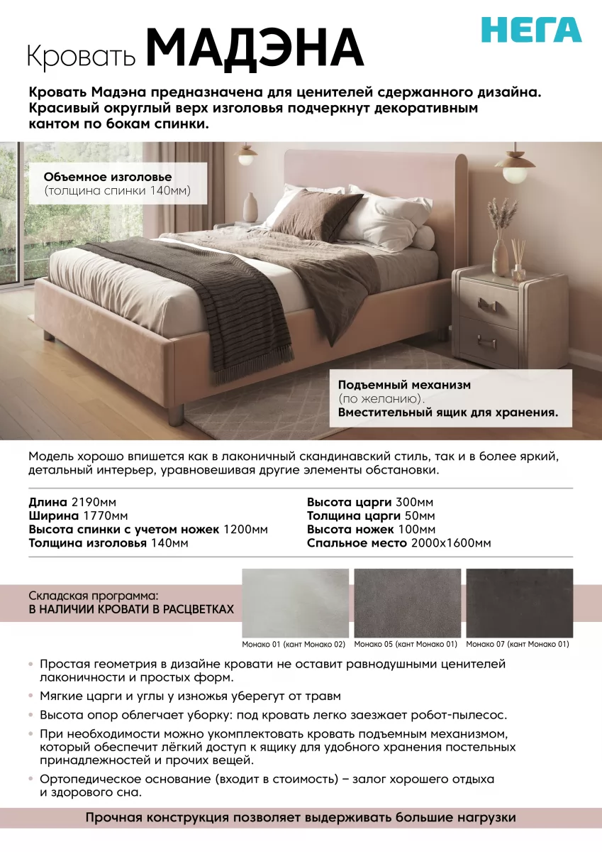 Кровать с подъемным механизмом 1800*1900/2000 Мадена Monaco 5