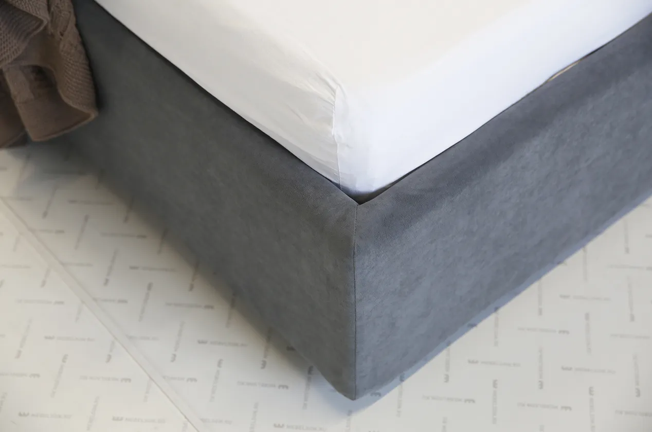 Обивка кровати выполнена из высококачественного велюра, который приятен на ощупь и добавляет шарма и элегантности вашей спальне. Вы можете выбрать один из множества цветов, таких как галька, графит, капучино, крем, латте, мята, пудра или топаз, чтобы соответствовать вашему личному стилю и предпочтениям.