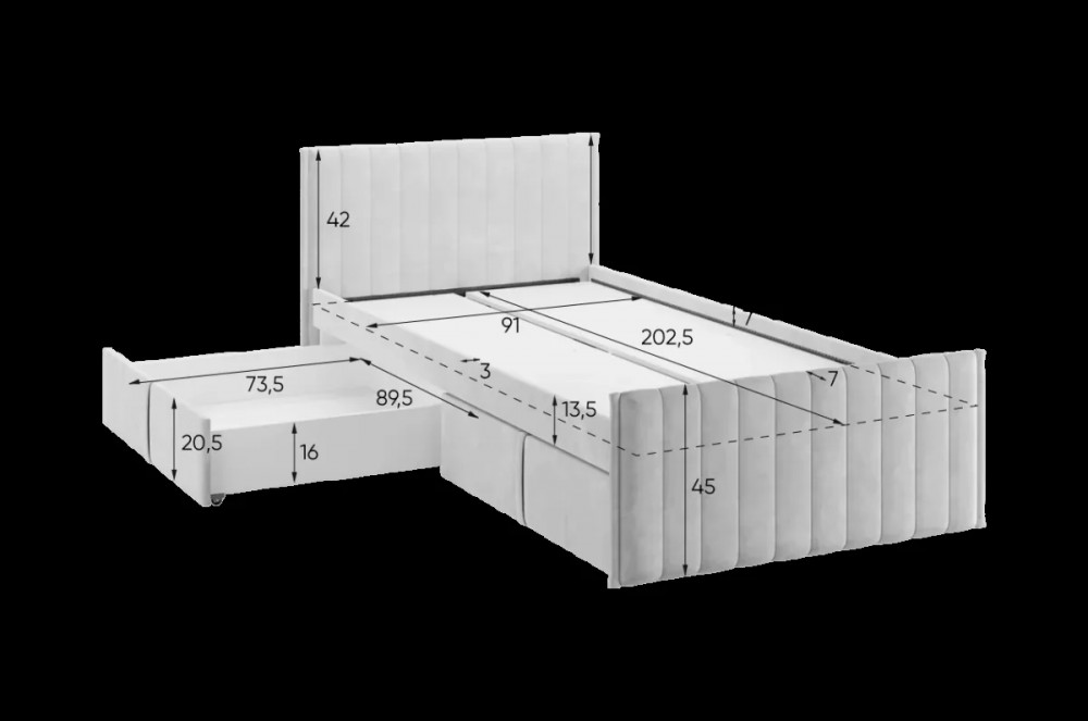 Мягкая кровать "Твикс" – это сочетание комфорта, стиля и функциональности, идеально подходящее для современного интерьера. Мягкое изголовье обеспечивает дополнительную поддержку для спины во время чтения или отдыха. А мягкие корпус и фасады ящиков, обтянутые высококачественным велюром, создают уютную атмосферу и дополнительную безопасность Кровать оснащена удобными выкатными ящиками на роликах высотой Н30, что позволяет легко хранить игрушки, постельное белье или другие вещи, сохраняя порядок в комнате. Армированное основание из ЛДСП обеспечивает надежную поддержку матраса и гарантирует удобный сон.