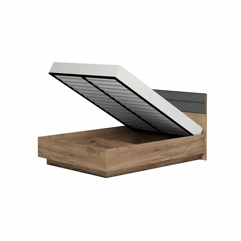 Успокаивающий благородный оттенок корпуса с контрастной вставкой на изголовье – делают облик кровати строгим и одновременно элегантным. Мягкое изголовье в экокоже черного цвета позволит расслабиться в конце рабочего дня и с комфортом почитать перед сном. В холодные дни экокожа будет дарить тепло и мягкость, а в жаркий день – радовать прохладой. За счет утопленной вглубь опоре со стороны изножья, кровать визуально «парит» над полом, одновременно сохраняя устойчивость конструкции. Подъемное основание идет в одном комплекте с корпусом, что позволит расходовать дорогие квадратные метры с максимальной рациональностью. Благодаря газлифтам, кровать поднимается без усилий и обеспечивает доступ к вместительному внутреннему коробу. На дно свободной ниши кладутся листы ХДФО, предохраняющие вещи от запыления. Допустимая нагрузка на подъемную кровать при закрытом состоянии подъемного механизма - 300 кг с учетом веса матраца, который не должен превышать, соответственно, 70 кг. Рекомендуемая высота матраса - не менее 18 см.