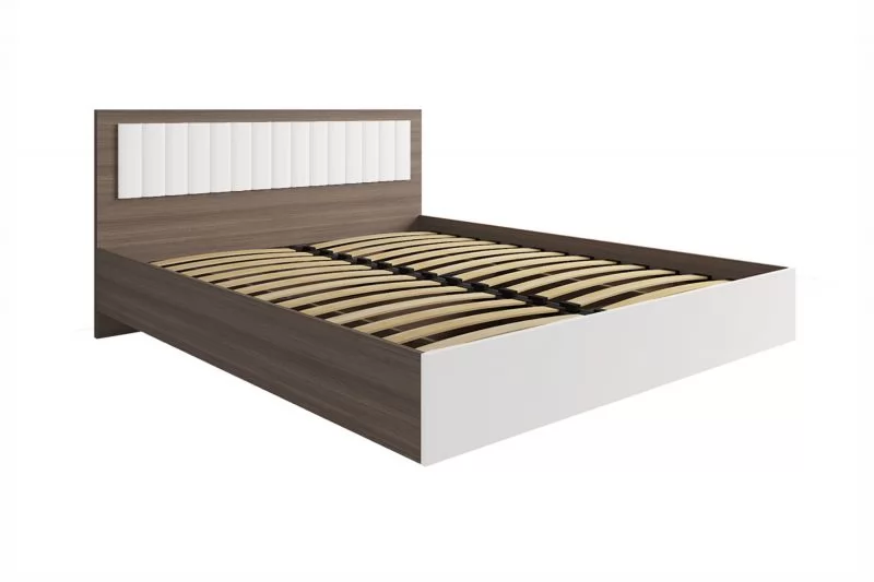Изголовье кровати выполнено из расширенной ЛДСП плиты толщиной 32 мм. и МДФ вставки, что придает конструкции особый шарм.
