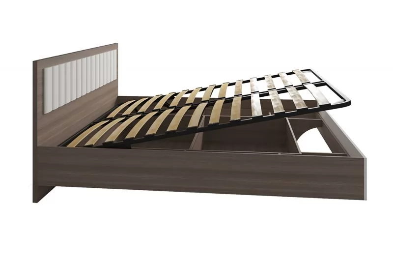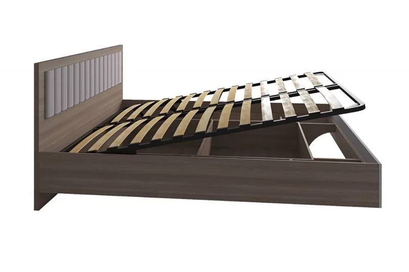 Подъемный механизм на газлифтах с ортопедическим основанием, для хранения вещей предусмотрено два отсека в основании. Изголовье кровати выполнено из ЛДСП плиты 32 мм., а также МДФ вставки 16 мм. Рекомендуемый размер матраса — 1600×2000 мм.