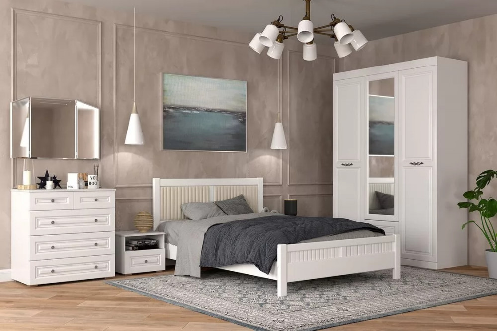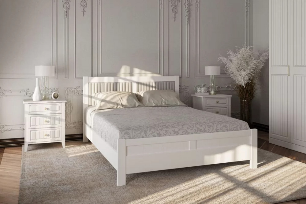 Кровать из массива Фрида Белый античный с ортопедическим основанием