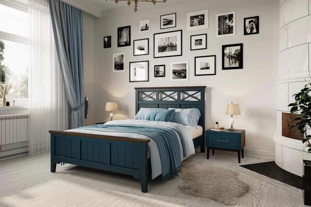 Кровать из массива Грация-5 сапфир / дуб коньяк с ортопедическим основанием