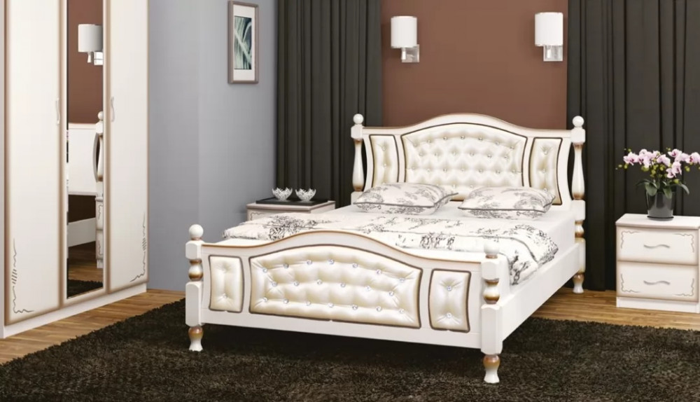 Для любителей восточного стиля. Роскошные кровати, достойные султана - грация в каждой детали, блеск стразов, благородные оттенки патины. Декоративные элементы кровати оформлены с помощью экокожи - современного, практичного и красивого материала.