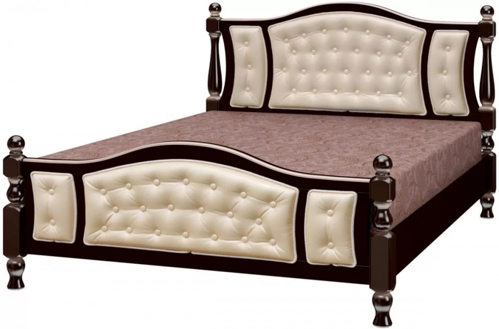 Выполнена из массива сосны, что придает кровати прочность, долговечность и экологичность. Покрыта защитным слоем высококачественного лака. Изголовье кровати сделано из ЭКО-кожи. Точеные детали придают кровати грациозность.