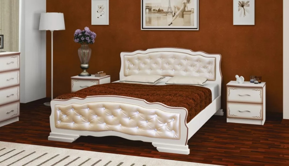 Кровать из массива Карина-10 Белый античный с ортопедическим основанием