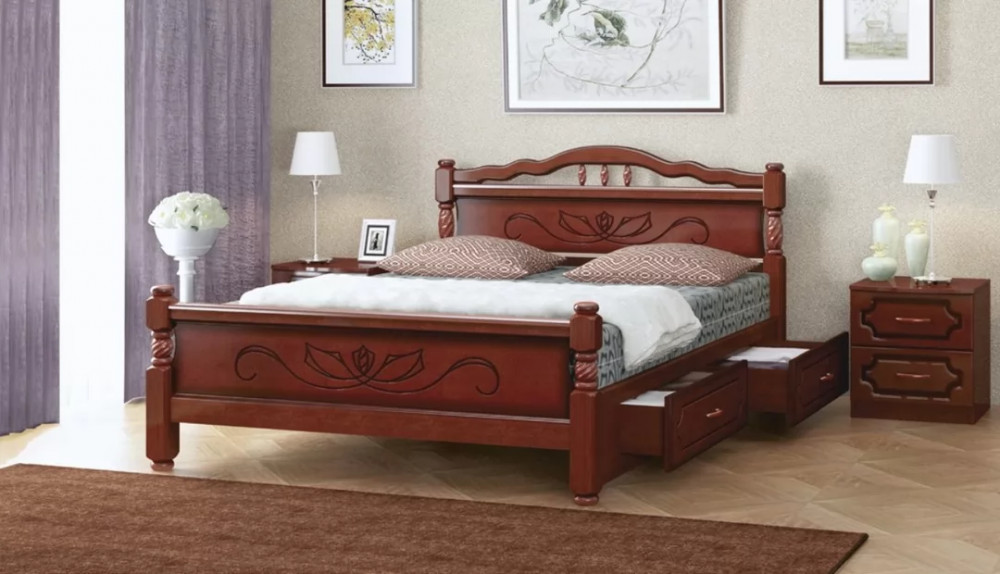 Кровать из массива Карина-6 с выкатными ящиками орех с ортопедическим основанием