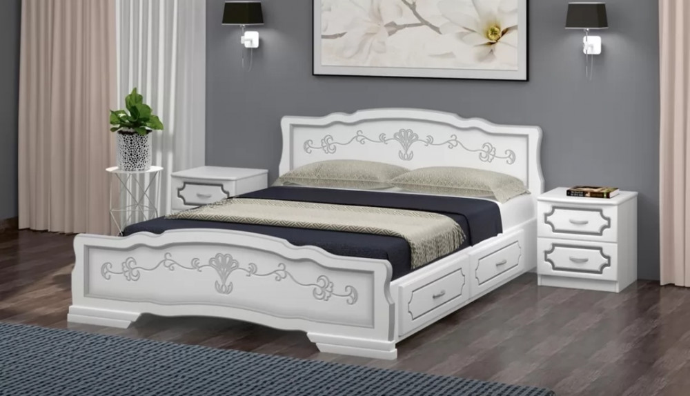 Кровать из массива Карина-6 с выкатными ящиками орех с ортопедическим основанием
