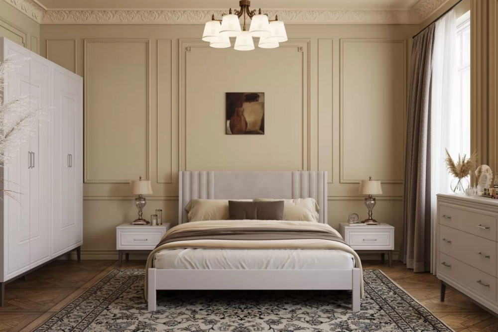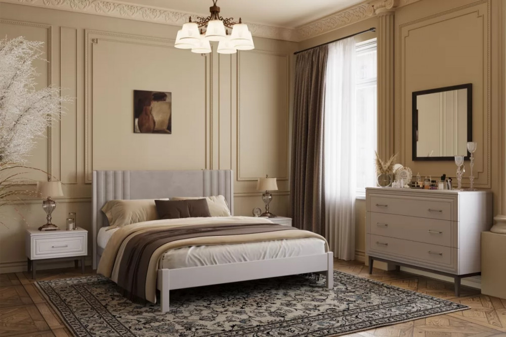 Кровать из массива Нортан Белый античный/бежевый с ортопедическим основанием