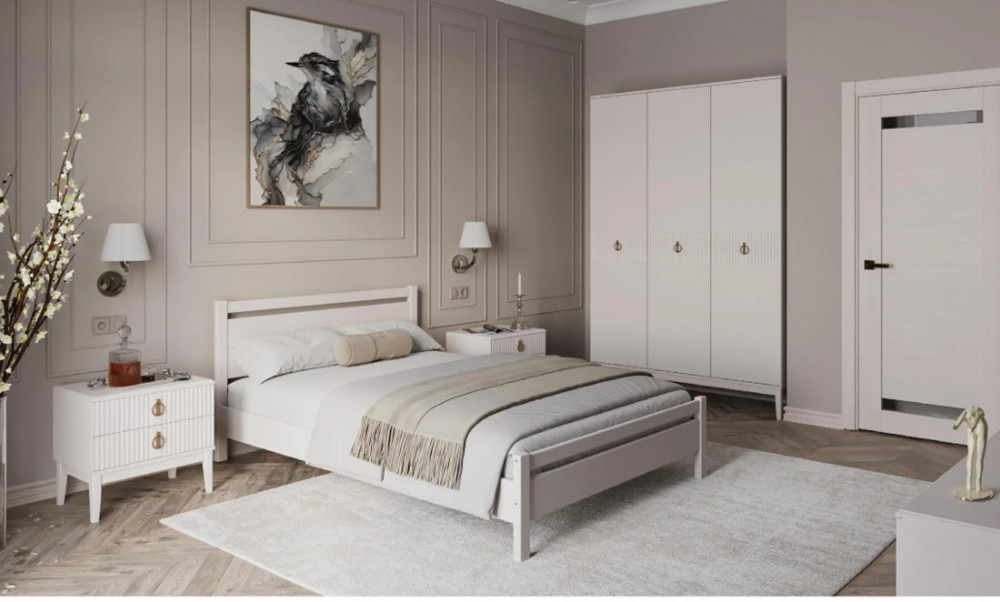 Кровать из массива Вероника-1 Льняной с ортопедическим основанием