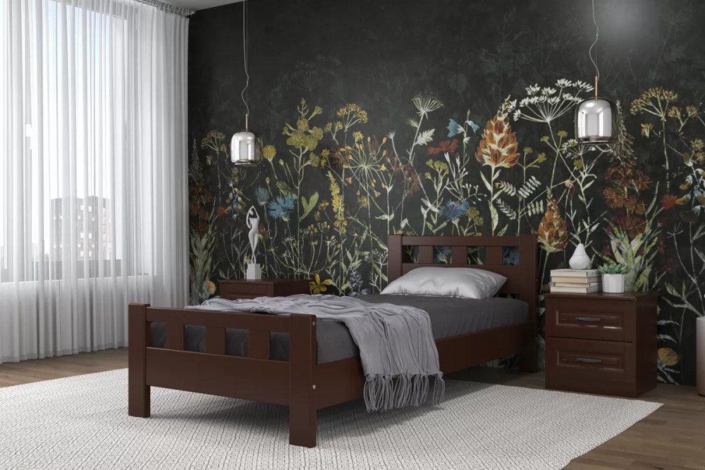 Кровать из массива Вероника (орех темный) с ортопедическим основанием