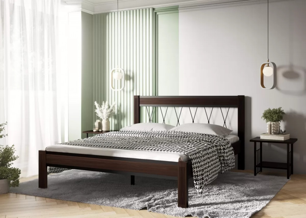 Кровать "Кантри" КМД23 ЧЁРНЫЙ-ШОКОЛАД (1600*2000) (ножки-шоколад)