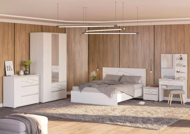 АДЕЛИНА Кровать (сп/м 1400*2000мм) (с основанием, б/матраса), ЛДСП Рамух белый