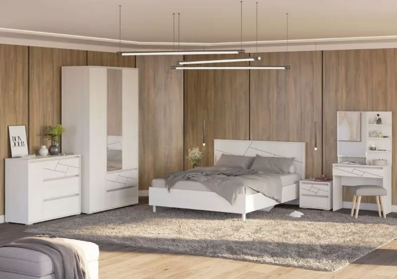 АДЕЛИНА Кровать (сп/м 1400*2000мм) (с основанием, б/матраса), ЛДСП Рамух белый