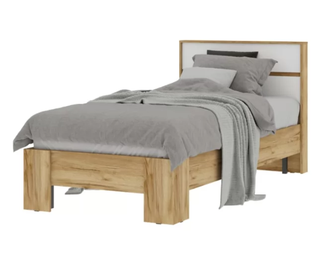 ХЕЛЕН КР01 Кровать (сп/м 900*2000мм), (с основанием, б/матраса), Дуб Крафт Золотой/Белый
