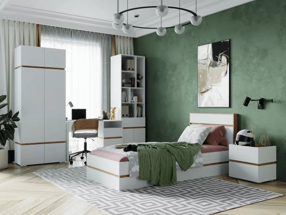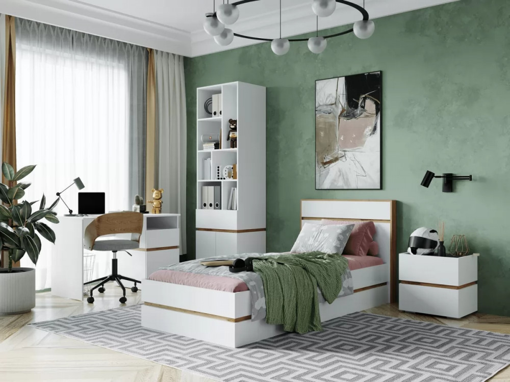 Кровать 0,9 м. МС Аркон Белый/Дуб Вотан