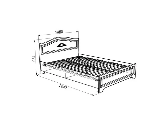 Состоит из: каркаса, спинки из ЛДСП с резным рисунком, ортопедического основания. Матрас приобретается отдельно.