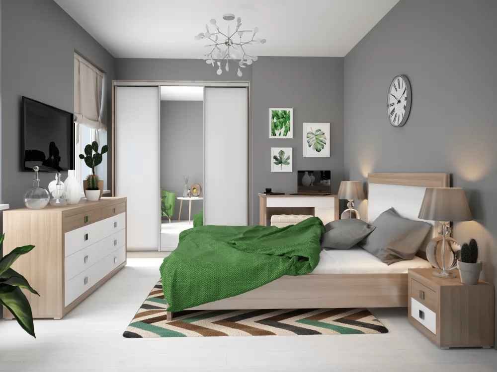 Спальный гарнитур «Стелла» стандартный Серый вулкан, Фон серый, Велюр Графит