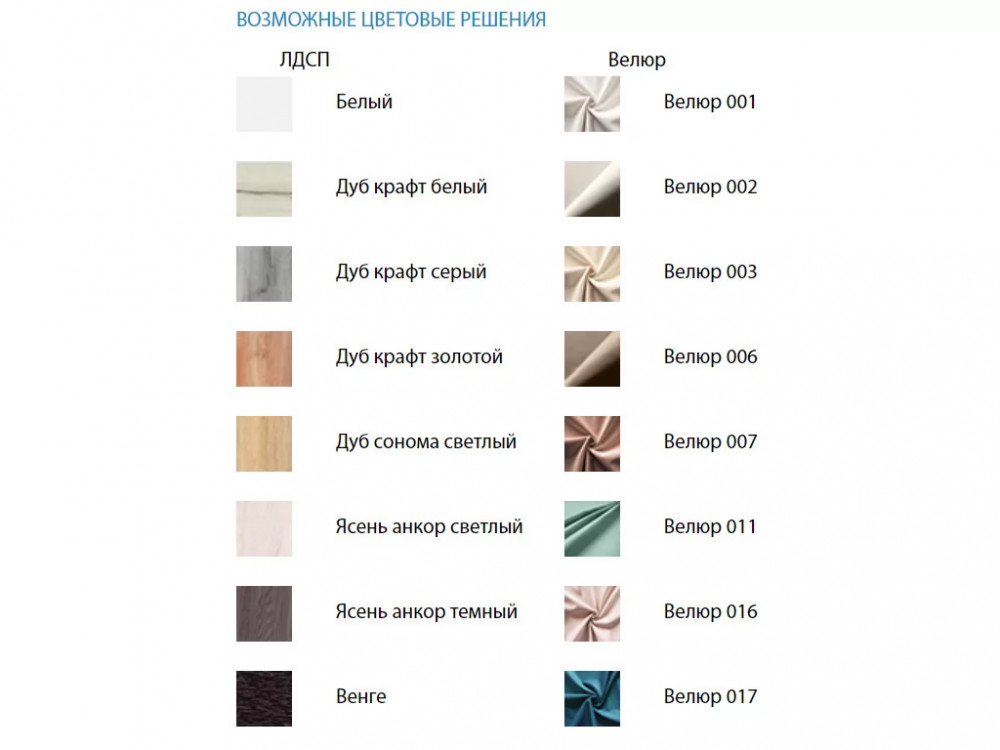Материал: ЛДСП дуб крафт серый, велюр 108