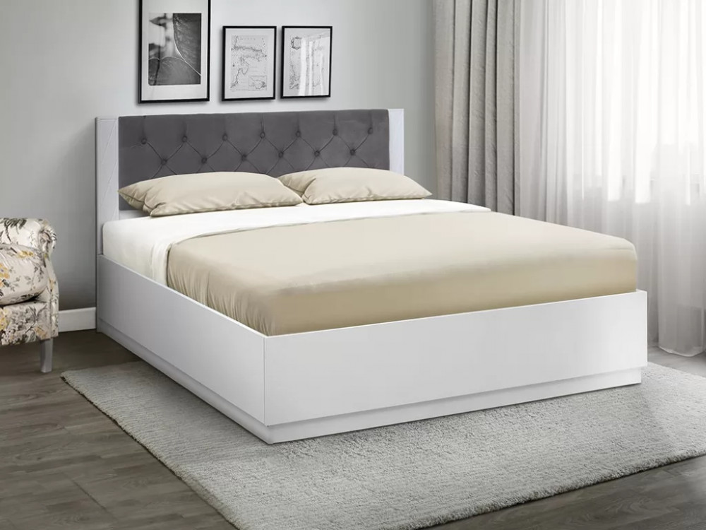 Цвет на фото: ЛДСП Белый, мдф белый матовый, ткань велюр 032, (каретная стяжка)