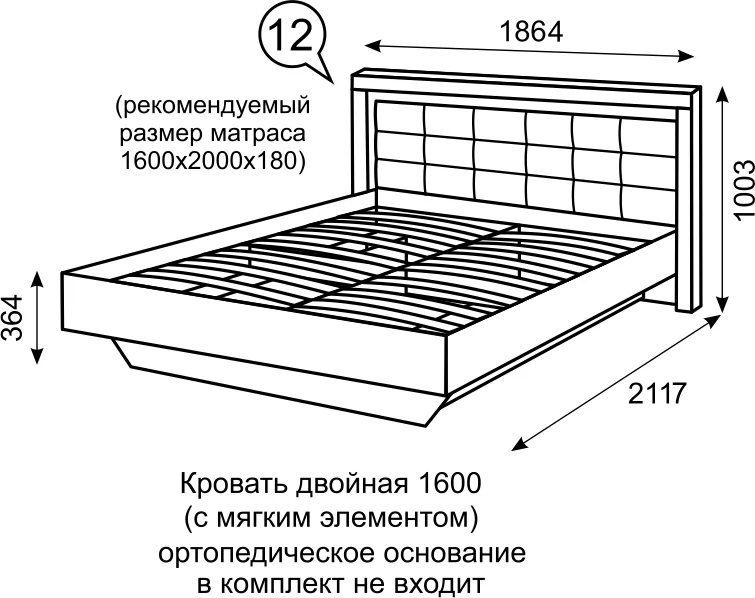 | Спальное место: | 1600х2000 мм |