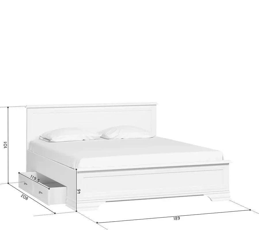 Кровать Kentaki S320-LOZ180х200+выкатные ящики белый с основанием