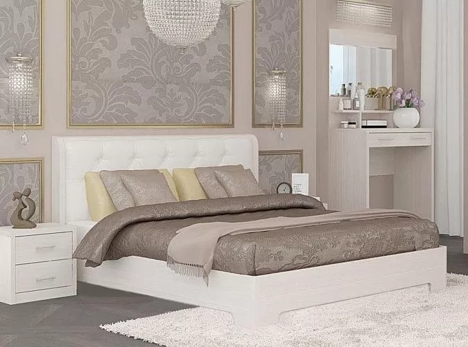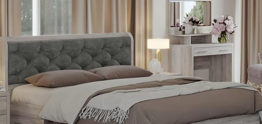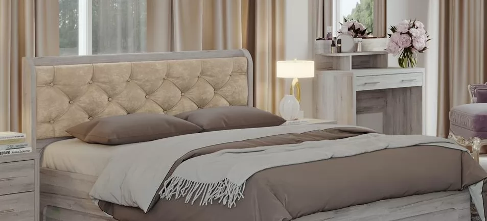 Корпус — ЛДСП 16 мм. Царги и изголовье кроватей выполнены из 32 плиты, на щитах кроватей используется каретная стяжка в стиле капитоне (ручная работа).