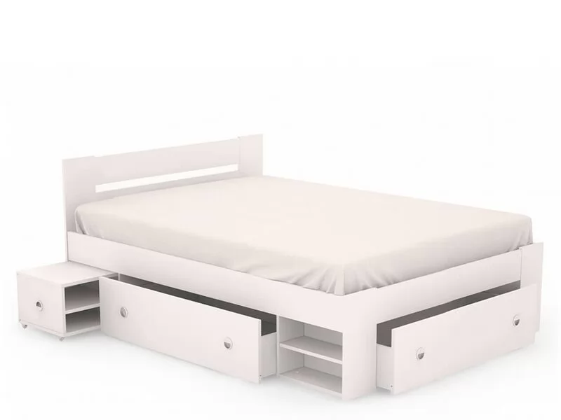 В комплекте: три ящика для белья, две выдвижные тумбы прикроватные.