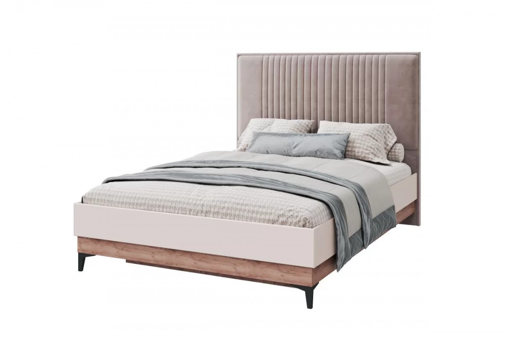 Мягкое изголовье кровати выполнено в ткани Модус 02. Накладки на царгах МДФ - в цвете бисквит