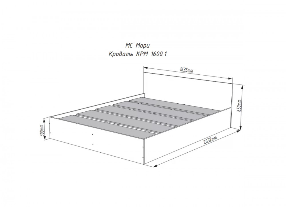 МОРИ КРМ1600.1/1 Кровать (сп/м 1600*2000мм), ЛДСП белый (МП/3) НАСТИЛЫ