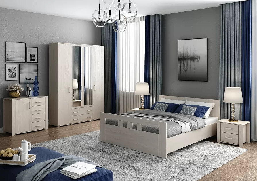 Современный спальный гарнитур "Сопрано" отлично впишется в любой интерьер. В комплекте есть всё необходимое для обустройства функциональной обстановки: просторная кровать и несколько модулей для хранения одежды, аксессуаров и постельных принадлежностей.