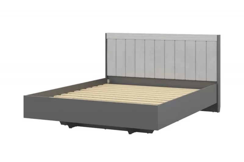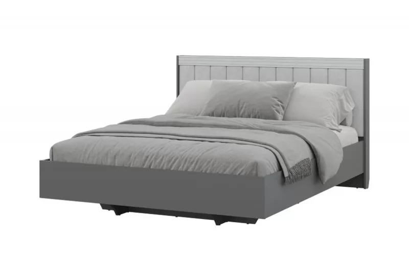 СТЕФАНИ Кровать с мягк. изголовьем (сп.м.1600*2000мм), (с основанием), Графит/Серый софт