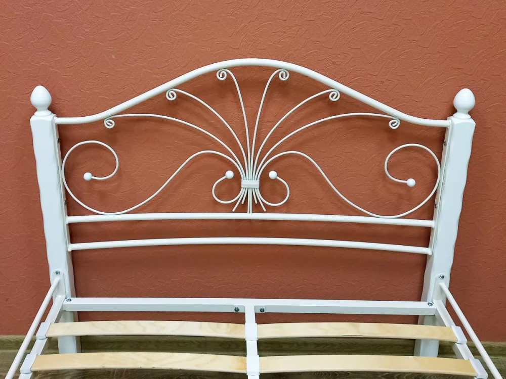 Кровать "Фортуна 1" КМД 2.01 КРЕМОВО-БЕЛАЯ (1400*2000) (ножки-белый) с коваными элементами