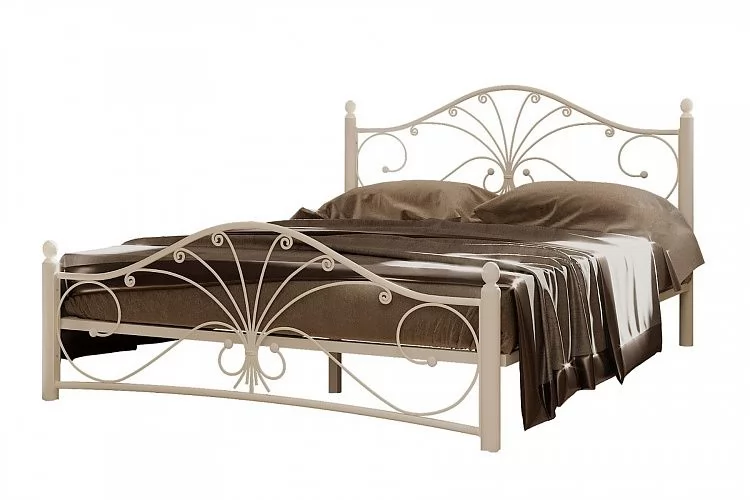 Кровать "Фортуна 2" КМД 2.02 КРЕМОВО-БЕЛАЯ (1600*2000) (ножки-кремово-белый) с коваными элементами