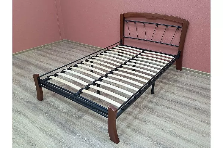Кровать "Муза 4 ЛАЙТ" КМД9 ЧЕРНАЯ (1400*2000) (ножки-махагон) с коваными изделиями