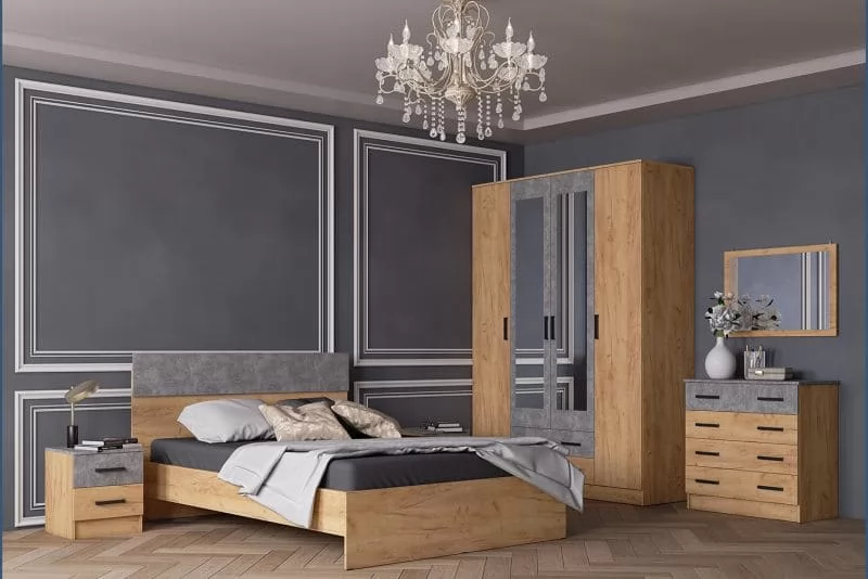 АСТИ Кровать (сп/м 1600*2000мм), ЛДСП Дуб крафт золотой /ЛДСП Ателье светлое