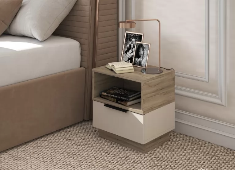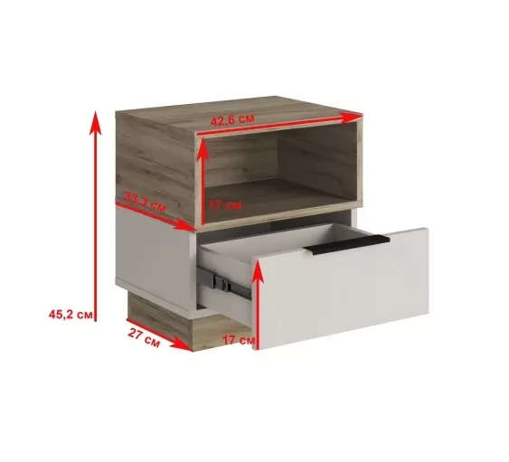 БОХО Тумба прикроватная ТМ-002 ЛДСП Дуб крафт серый/Кашемир 5981 BS