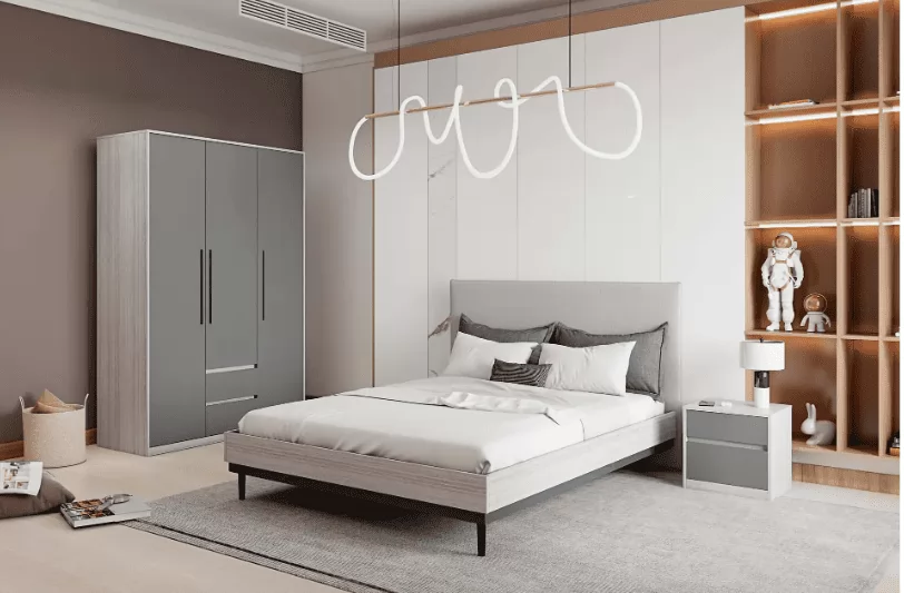 Спальня №1 "Неаполь" Ясень анкор светлый/Ясень анкор светлый + патина серебро