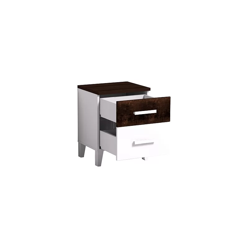 Прикроватная тумба Норвуд 41– необходимый предмет мебели в современной спальне. Два ящика глубиной 300 мм оснащены шариковыми направляющими полного выдвижения, что обеспечивает плавность и бесшумность хода. Опоры со скосом позволят без труда делать уборку в Вашей спальне. Яркие акценты белоснежной тумбы - контрастная столешница толщиной 22 мм в декоре Орех Шоколадный и фасад верхнего ящика из дерева с брашировкой.