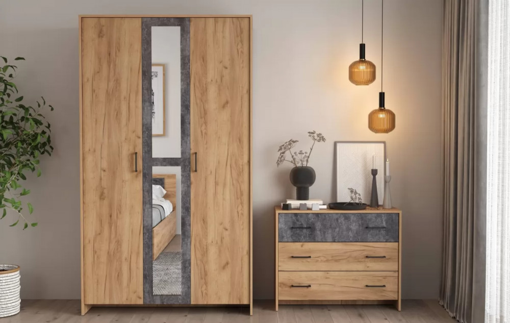 Цвет: дуб золотой/цемент темный/ДВПО белый