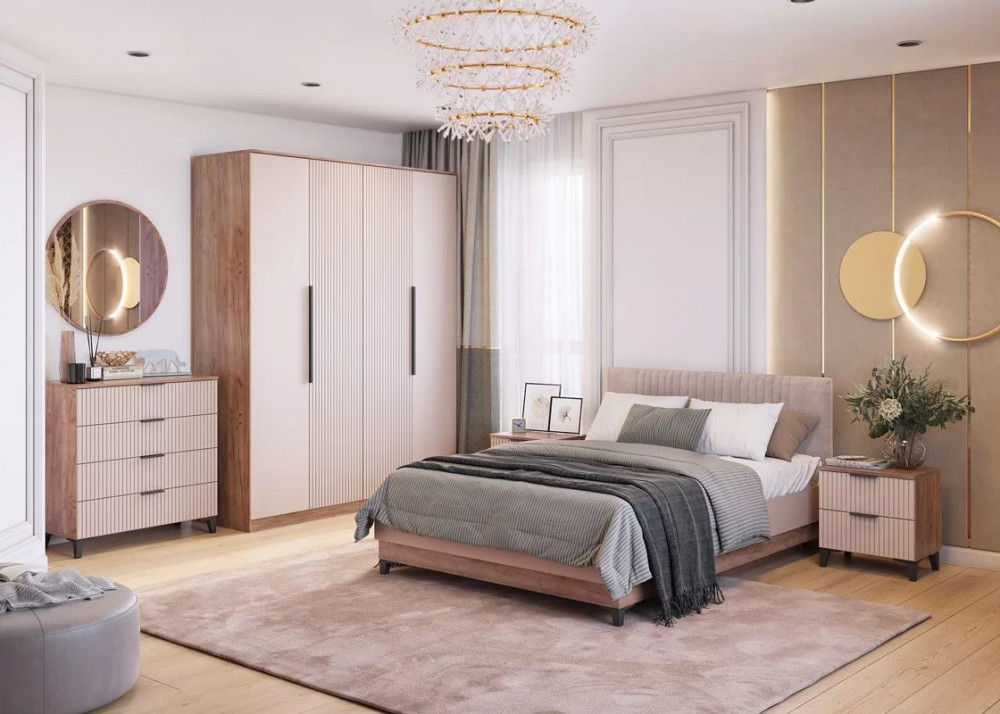 Корпус - ЛДСП 16 мм в цвете дуб табачный. Фасад МДФ - 16 мм в цвете бисквит.